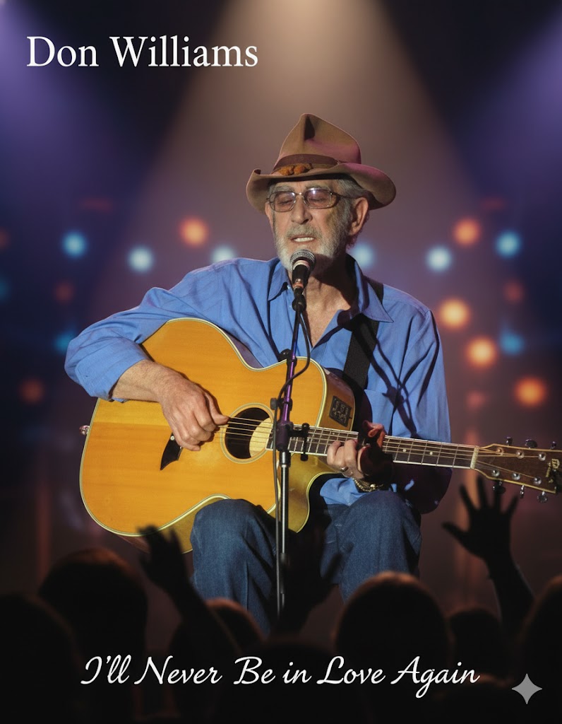 In essence, Don Williams’ “I’ll Never Be in Love Again” exemplifies why he remains one of country music’s most beloved voices. The song’s gentle sophistication, lyrical depth, and Williams’ masterful delivery create a listening experience that is both intimate and enduring. It is a song that does not just recount heartbreak—it honors it, allowing the listener to confront, reflect, and ultimately find solace in the universal journey of love, loss, and emotional reflection.
